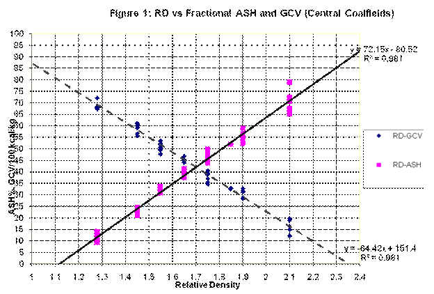 Coals from other coalfields may also have similar but different values, which mainly depend on its maturity and associated mineral matters. As CC coals are both coking and non-coking in nature, the variations are significant. More matured coals, having higher Carbon % in the pure coal (ultimate analysis on dmmf basis) will have higher GCV values at any given RD or ash content. The variation in GCV can be as high as 1000 kcal/kg and the variation of ash content is as high as 10% between coking and non-coking coals at any given R.D.