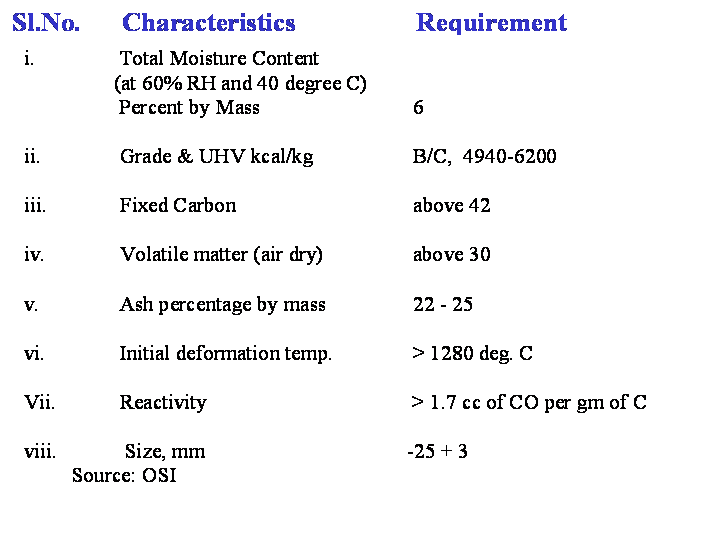 Coal Quality requirements for Sponge Iron